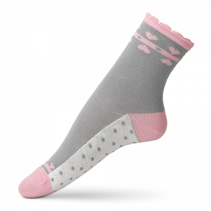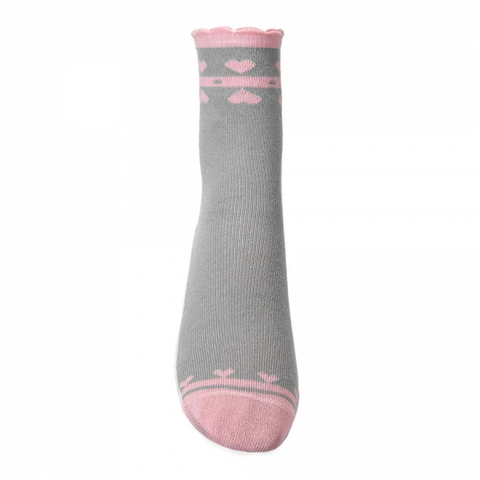 Нежные носки для девочек серого цвета с розовыми сердечками.
