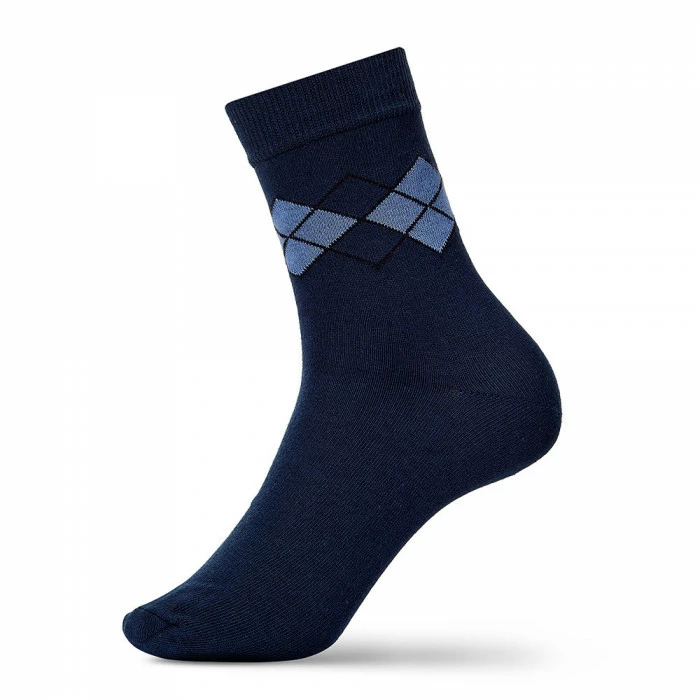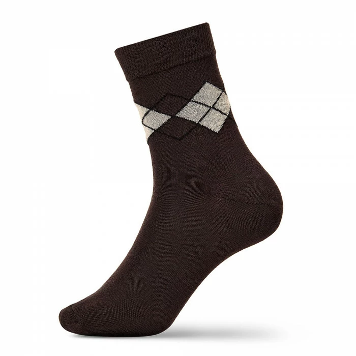 Классические мужские носки в коричневом или темно-синем цветах с ромбами на паголинку. Изготовлены из хлопковой тонкой и прочной нити высшего сорта. Дополнительно укреплены мисок и пятка, для увеличения срока эксплуатации изделия. Заканчиваются плотной двубортной резинкой, которая гарантированно не пережимает ногу. Хорошо тянутся под разные объемы лодыжки и создают дополнительное ощущение комфорта. Шов в области пальцев едва ощутим. Практичны и удобны для повседневной носки. Состав: хлопок - 85%, полиамид - 13%, эластан - 2%.
