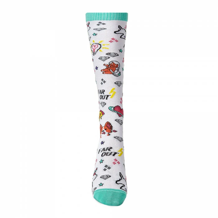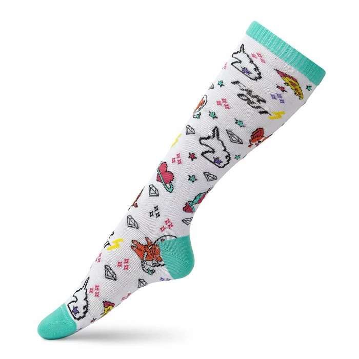 Гольфы белого цвета с паттернами единорогов, собачек и кусочков пиццы актуальный элемент гардероба для сезона весна-лето. Изготовлены из высококачественного хлопка, с вплетением нитей полиэстера для лучшей прочности. Бирюзовый мысок и пятка дополнительно укреплены, чтобы выдерживать все игры и приключения. Длина гольфа до колена подходит к юбкам и сукна. Эластичная резинка бирюзового цвета ни пережимает ножку. Состав гольфов: хлопок 72%, поламид 24%, эластан 4%. Желаний и креатив в гольфах от украинского производителя V&T Socks!