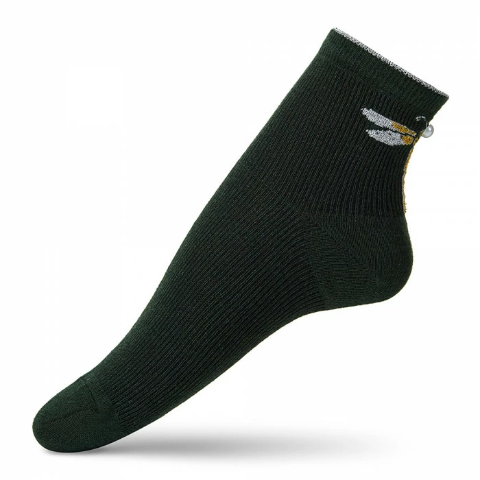Стильные женские носки со стрекозой на пятке, вышитой нитями